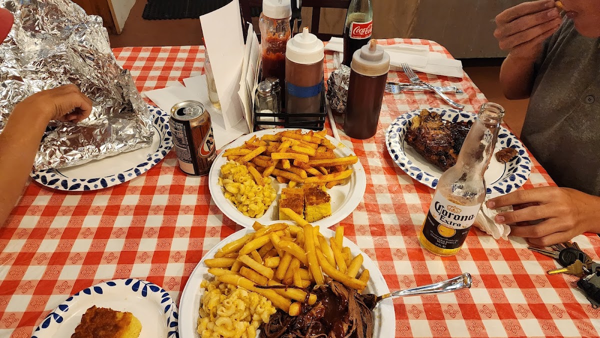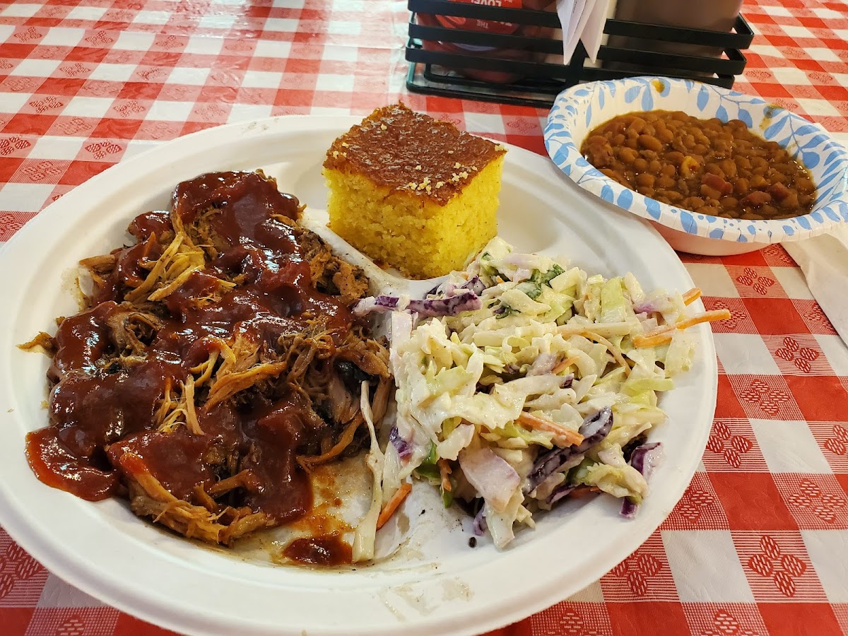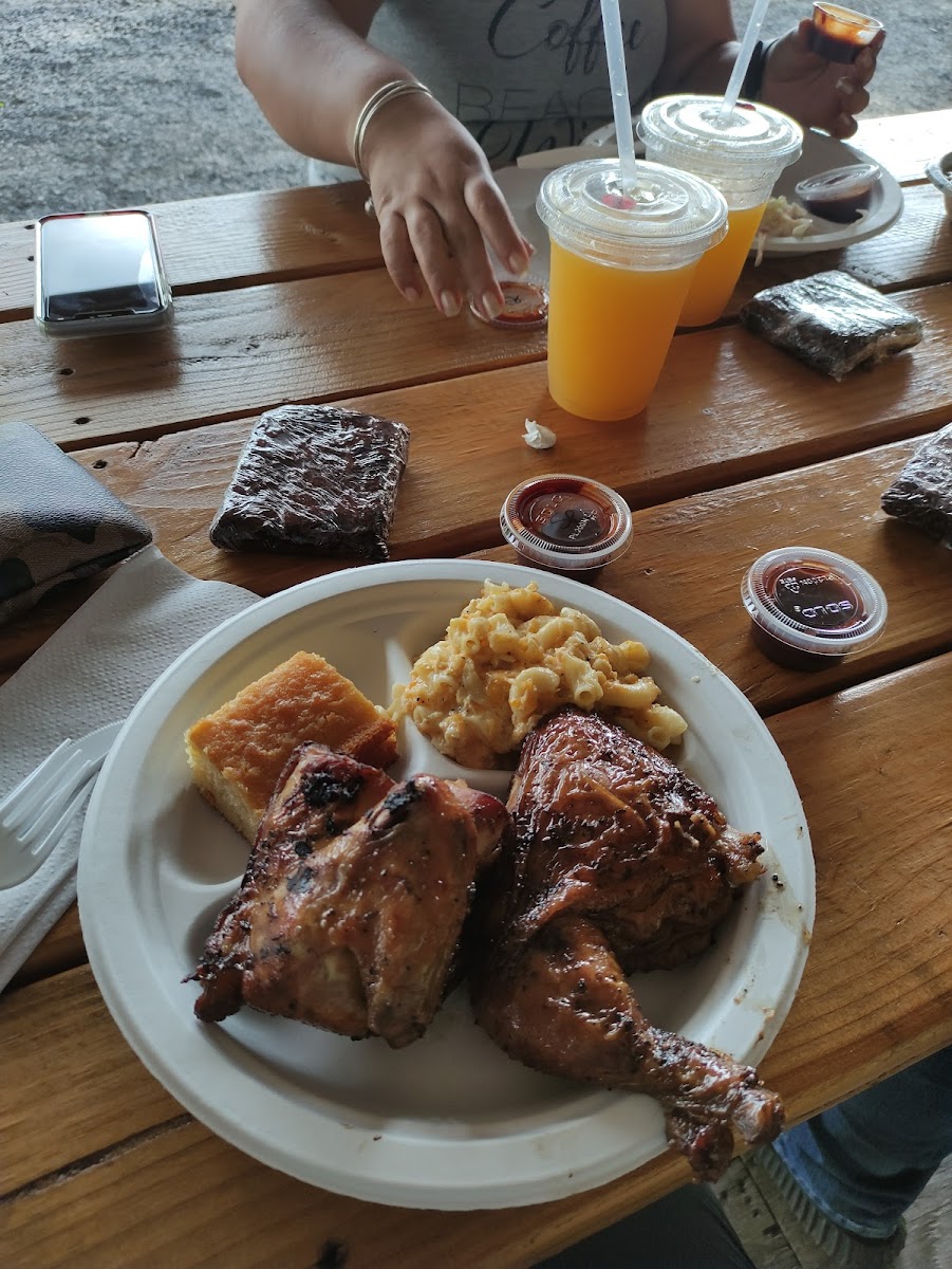 I absolutely LOVE this place. When I traveled out there on the weekends 6 hours away from home I would always make a pit stop or 2 here. My favorite is the brisket and chicken combo, Mac and cheese with greens and cornbread. So yummy. Reminds me of home Southern cooking. And the regular bbq sauce is finger licking good.